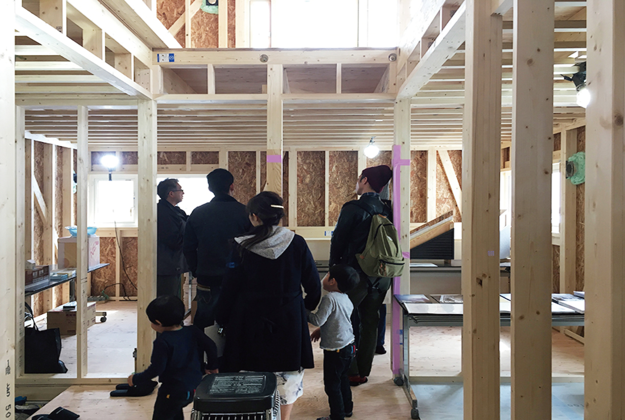 いつもは壁に隠れて見えなくなる構造体や金物などを見ることも触ることもできる見学会。性能やお家の工法についてご案内致します。