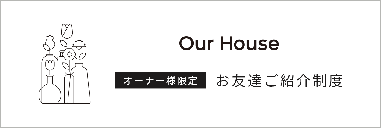 新築をされるご友人、お知り合いの方をご紹介ください。ご紹介された方が成約された場合に、ご紹介くださったオーナー様とご成約された方の両方に嬉しい特典をプレゼントいたします。