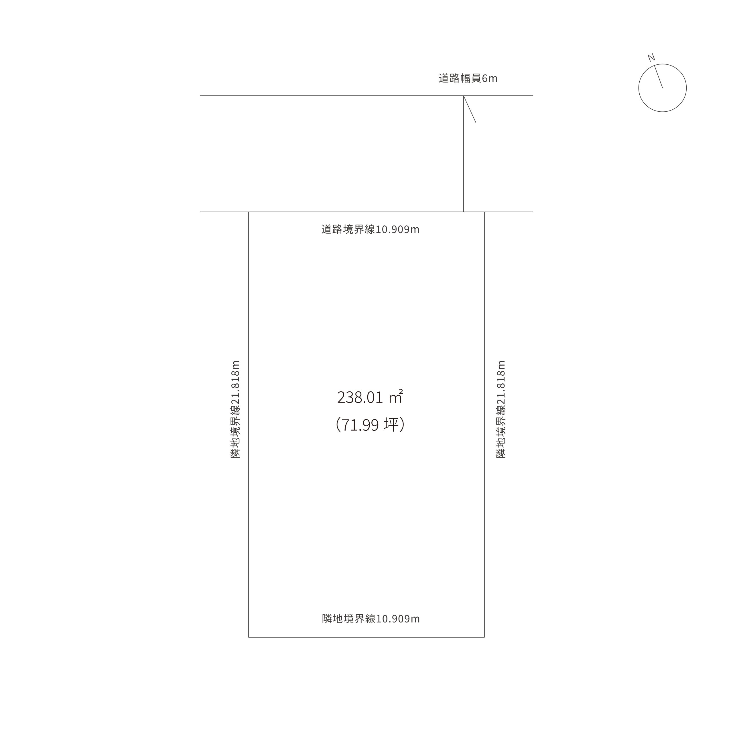- 北側道路 幅6m・接面10.909m