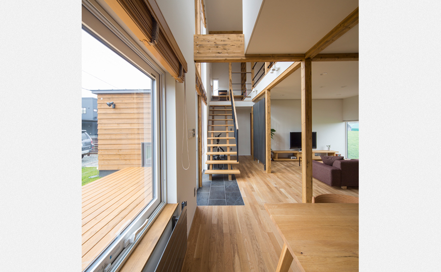 その反対側にある吹抜けの窓から、たくさんの光を取り込む。