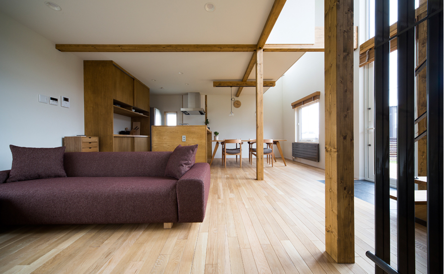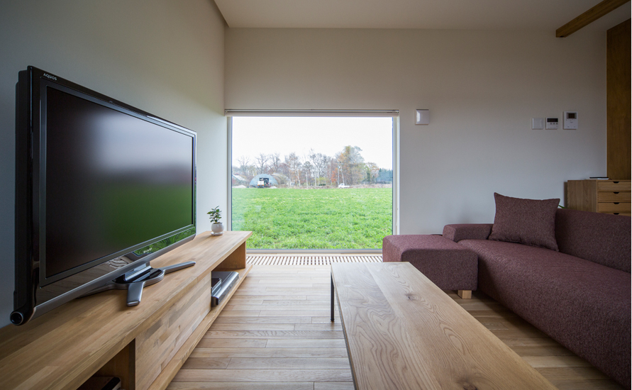 リビングのソファに座りながらも、自然と感じられる窓の配置とした。