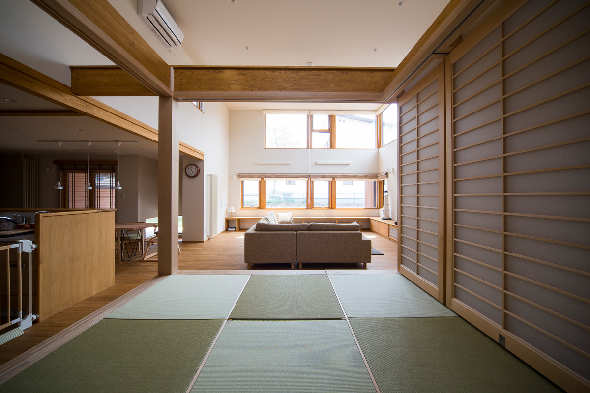 小上がりをコアとして 玄関 リビングをつなぐ回廊