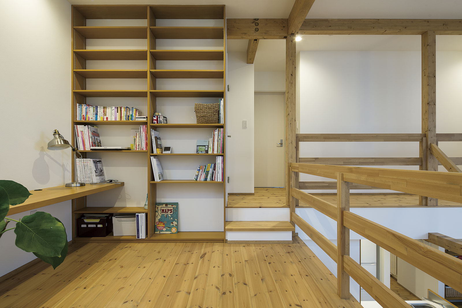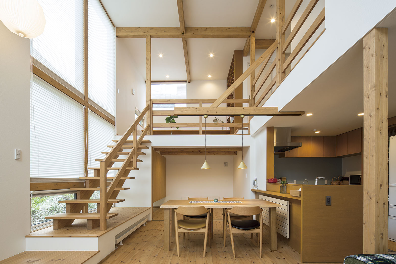 吹き抜けで繋がり合うお互いの場所に、外の様子が射し込んでくる。