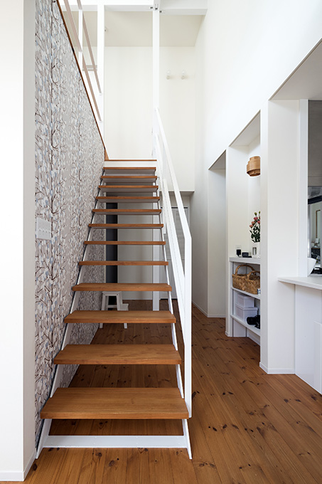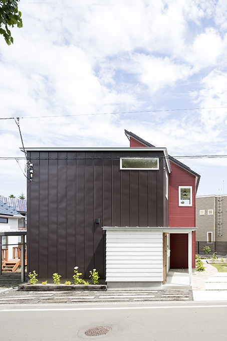 外壁の色使いなど随所に盛り込まれた家。