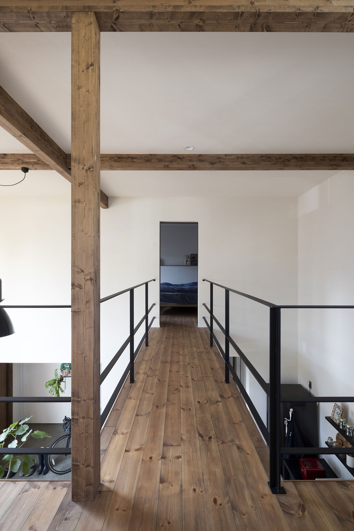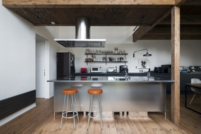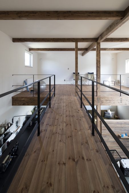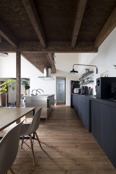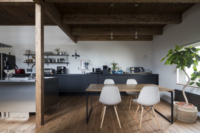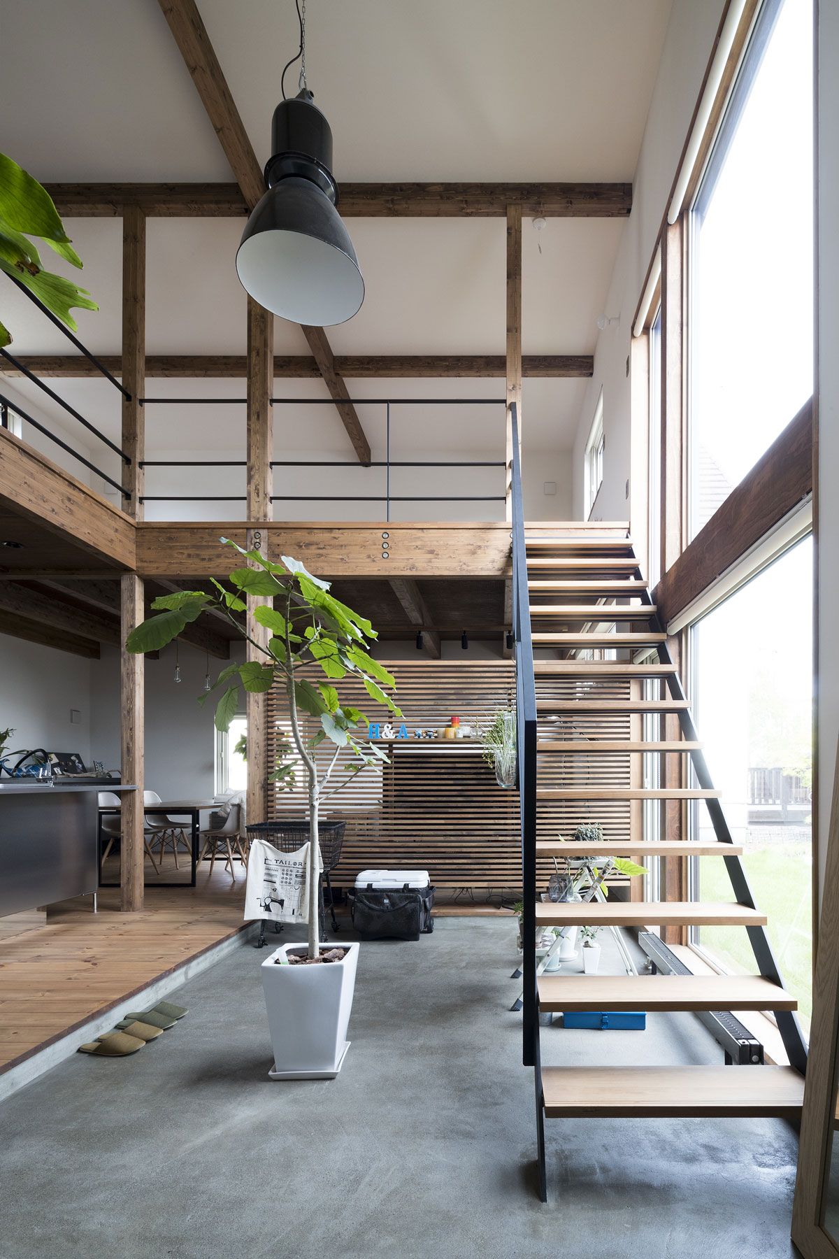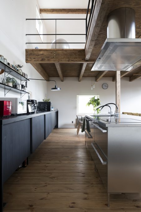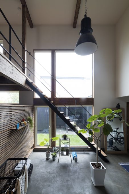 自転車いじりをする土間、植物をたくさんディスプレイできる場所、