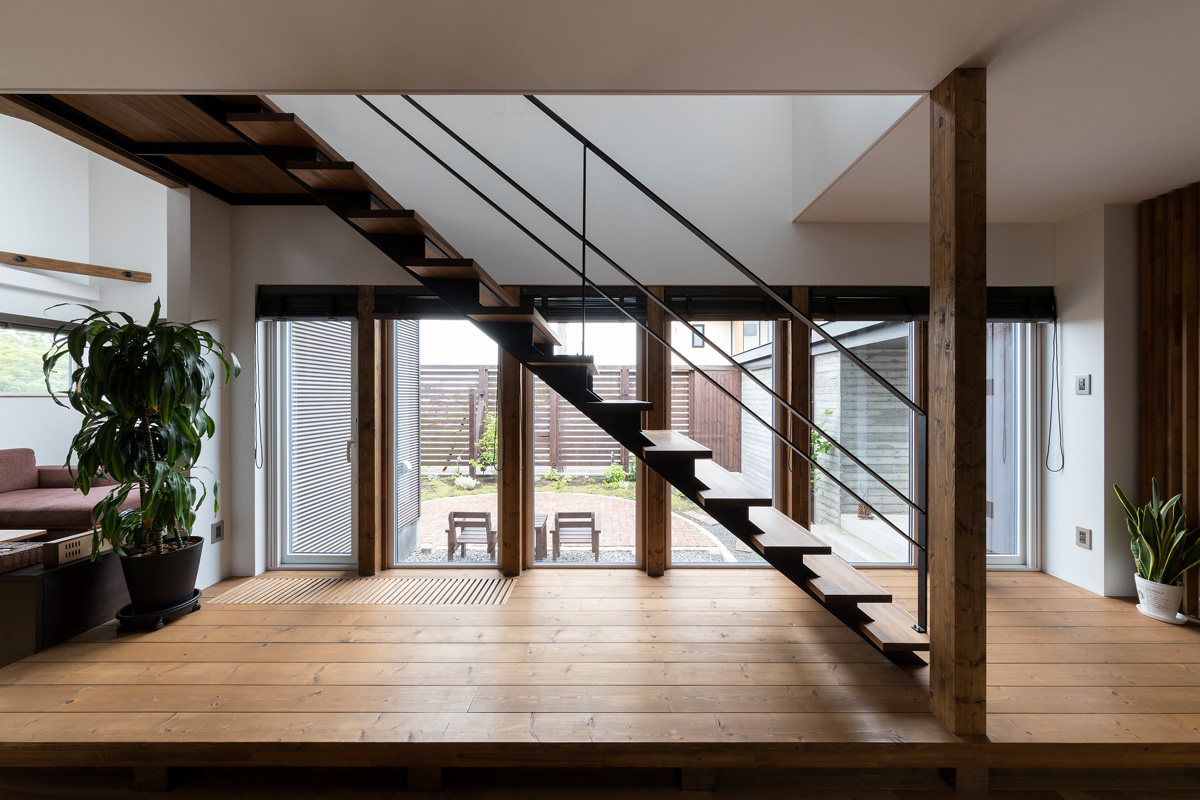 敷地全体をデザインしたこの家は、近隣の環境に適応した家となり本来の人が住む、「暮らしのデザイン」につながる。