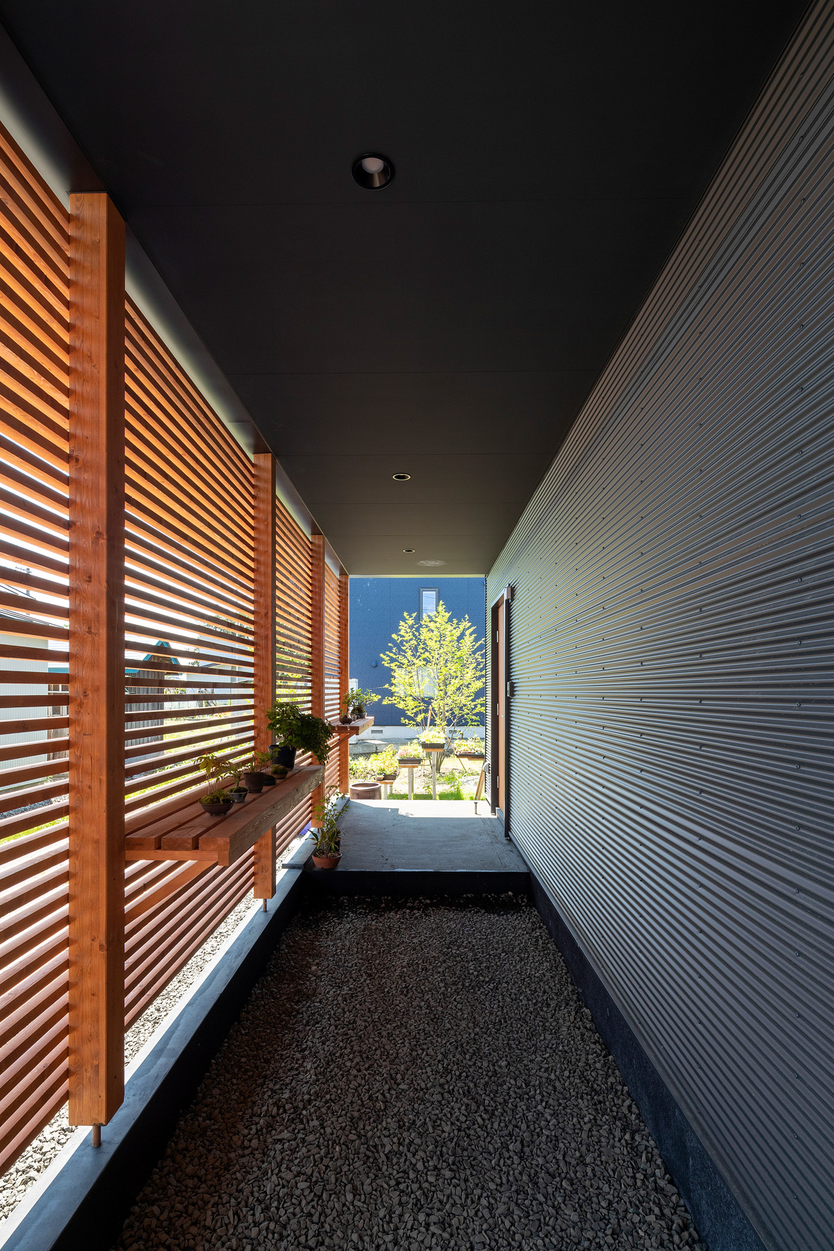 主人の手による盆栽が語りかけるように所々に佇んでいる