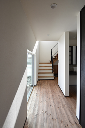 西面道路側には、水回りの部屋を集約させ、南面道路からはしっかりと距離をとって