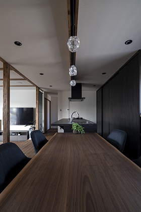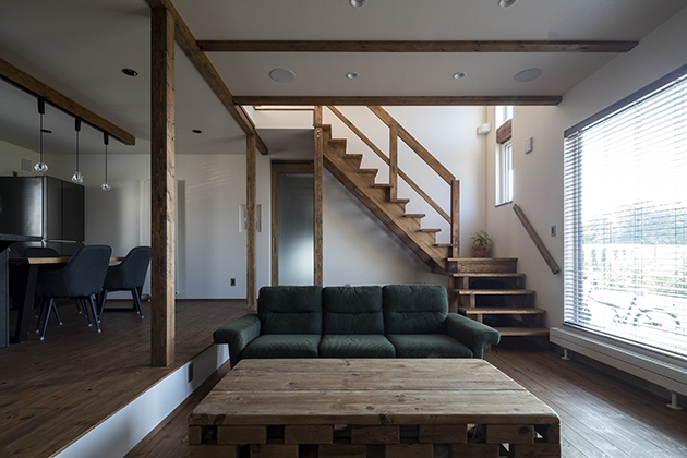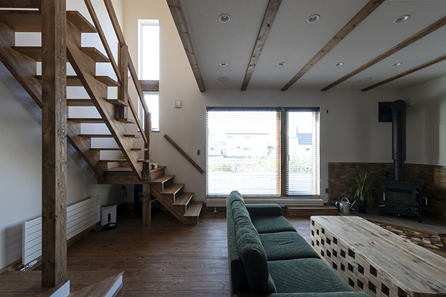 家族が集まるリビングには薪ストーブ。