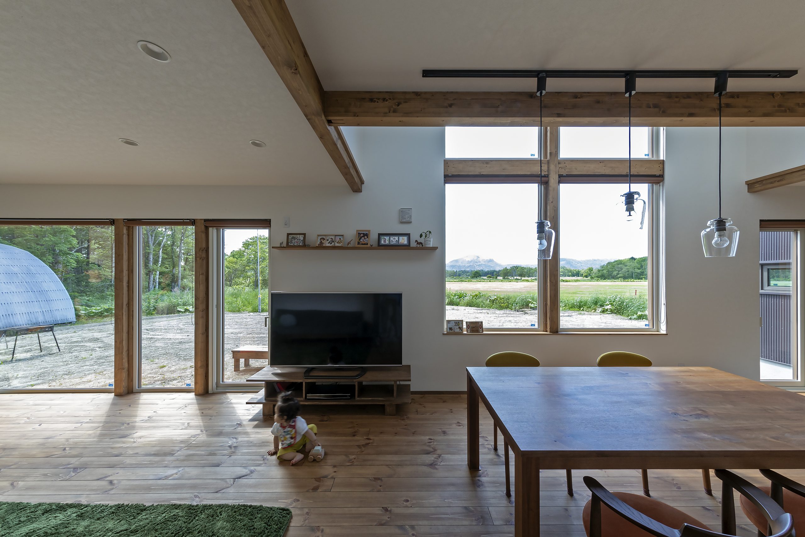 牧草地を臨む景観を生かし、そこに開放的な平面をつくること、