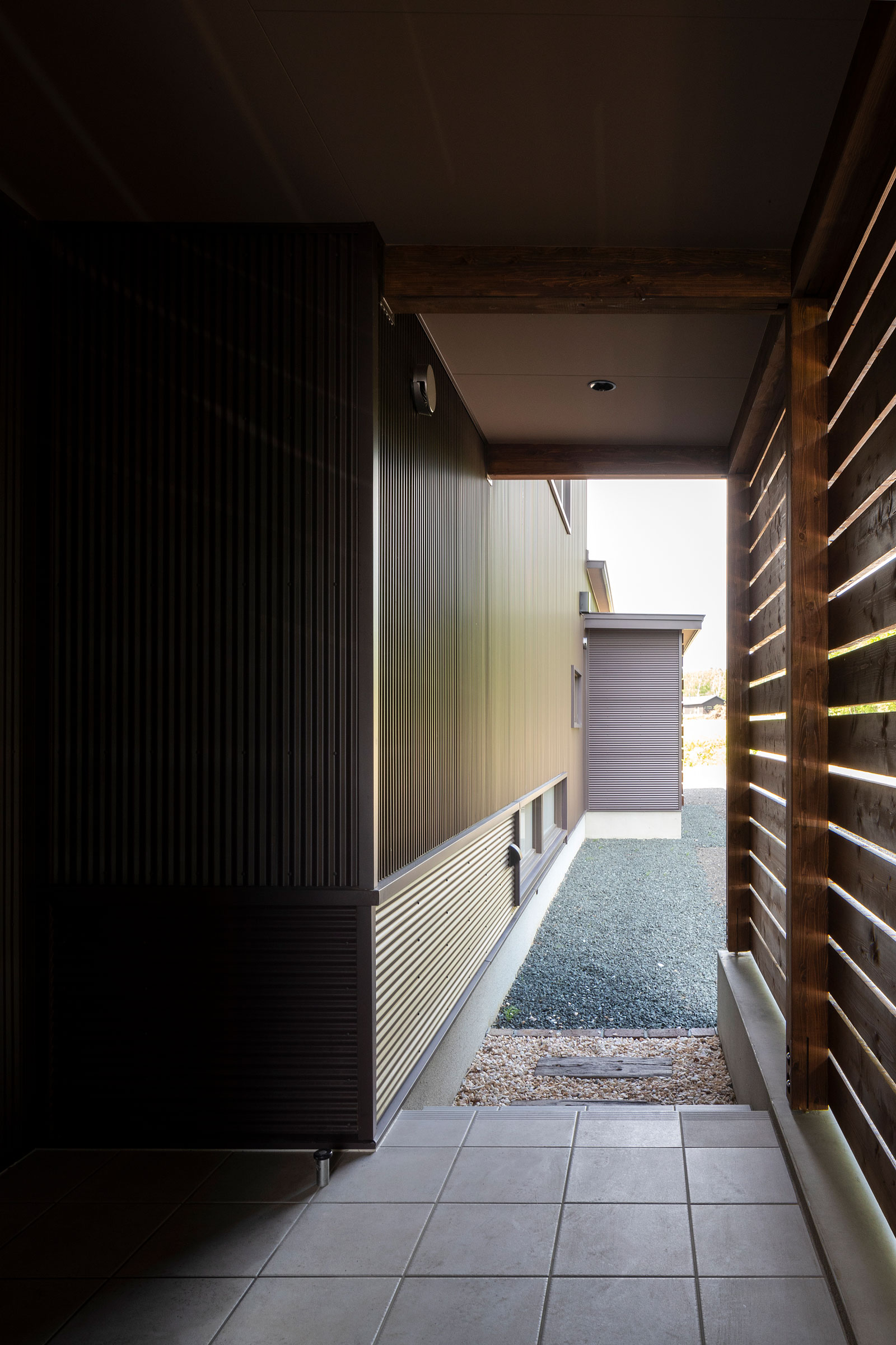 主要道に面するアプローチ側からは牧草地に対して目隠しになるよう、