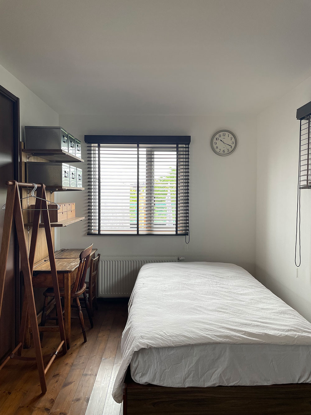 白い壁と無垢の木材が基調の1LDK。