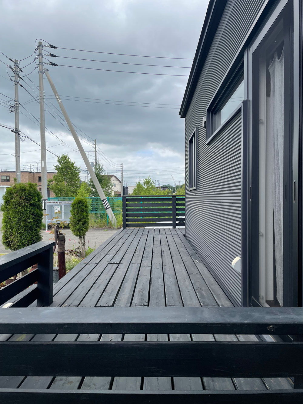 枕木がアクセントになっているシンプルな庭は、