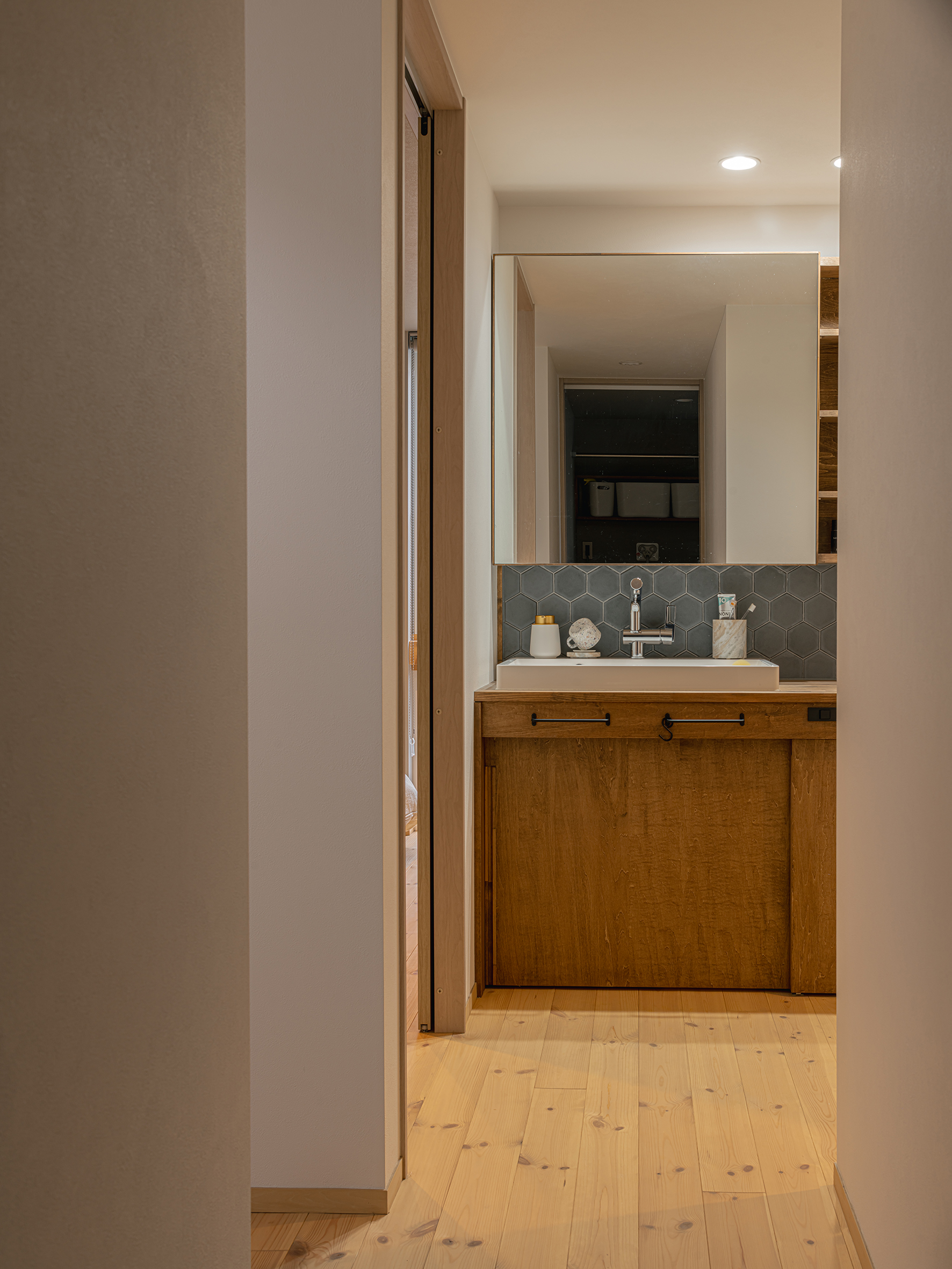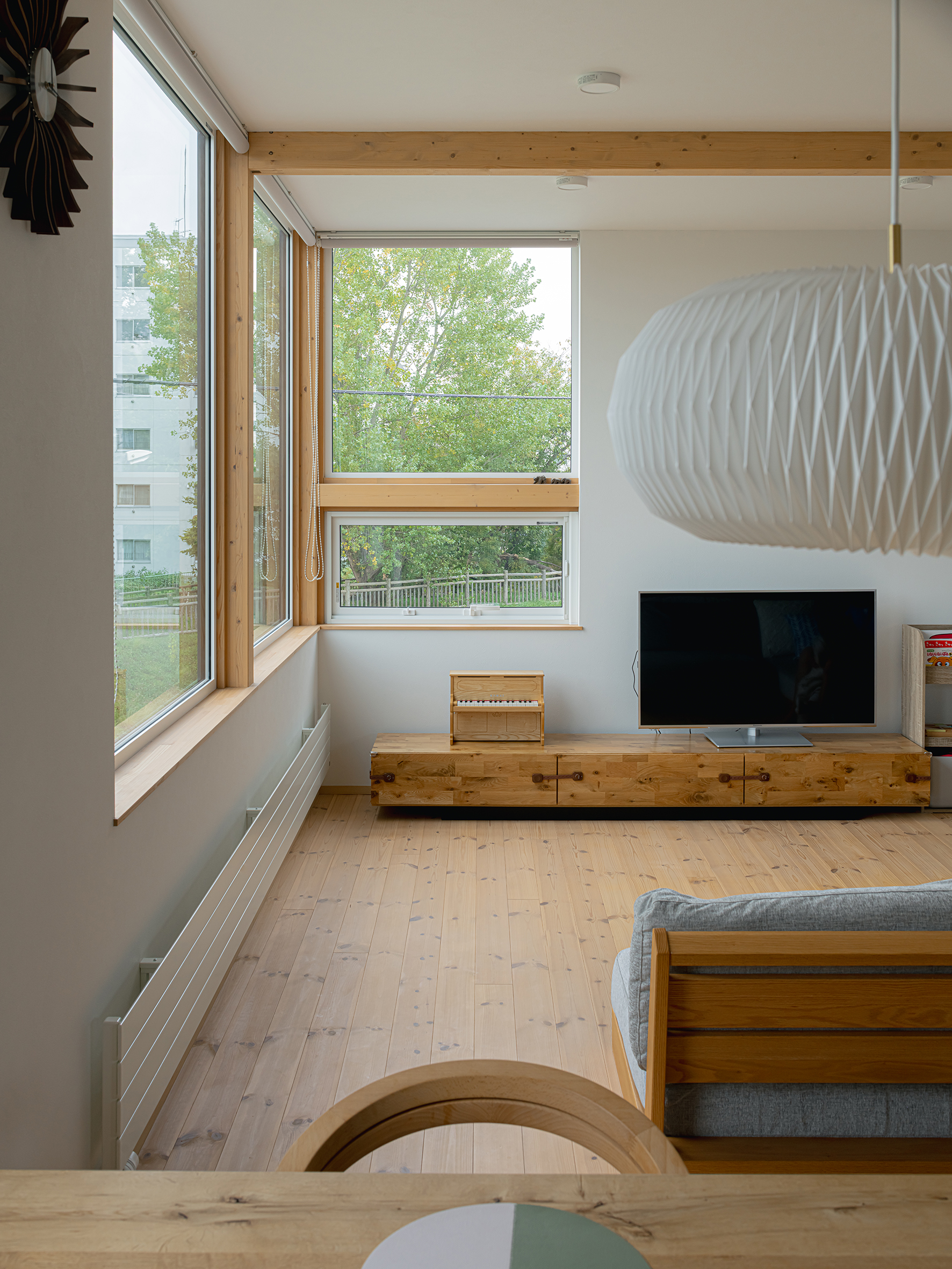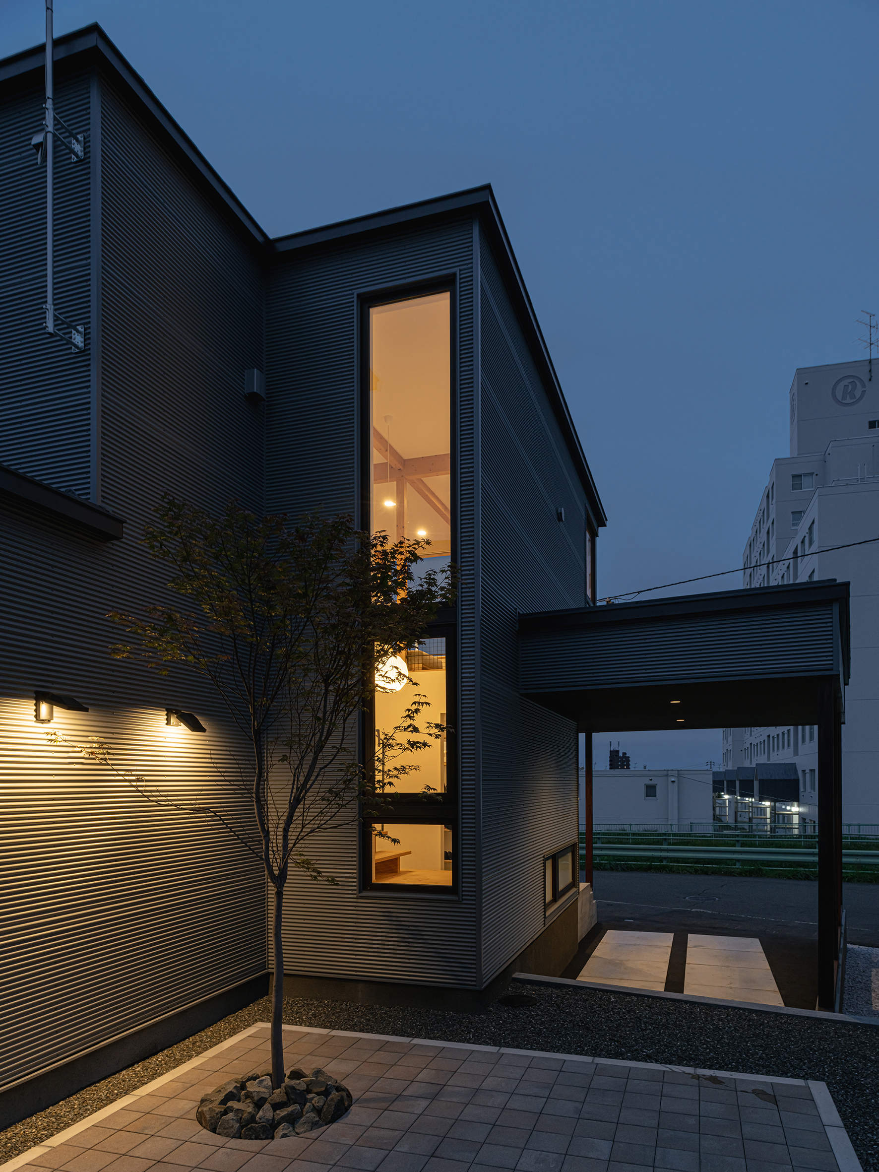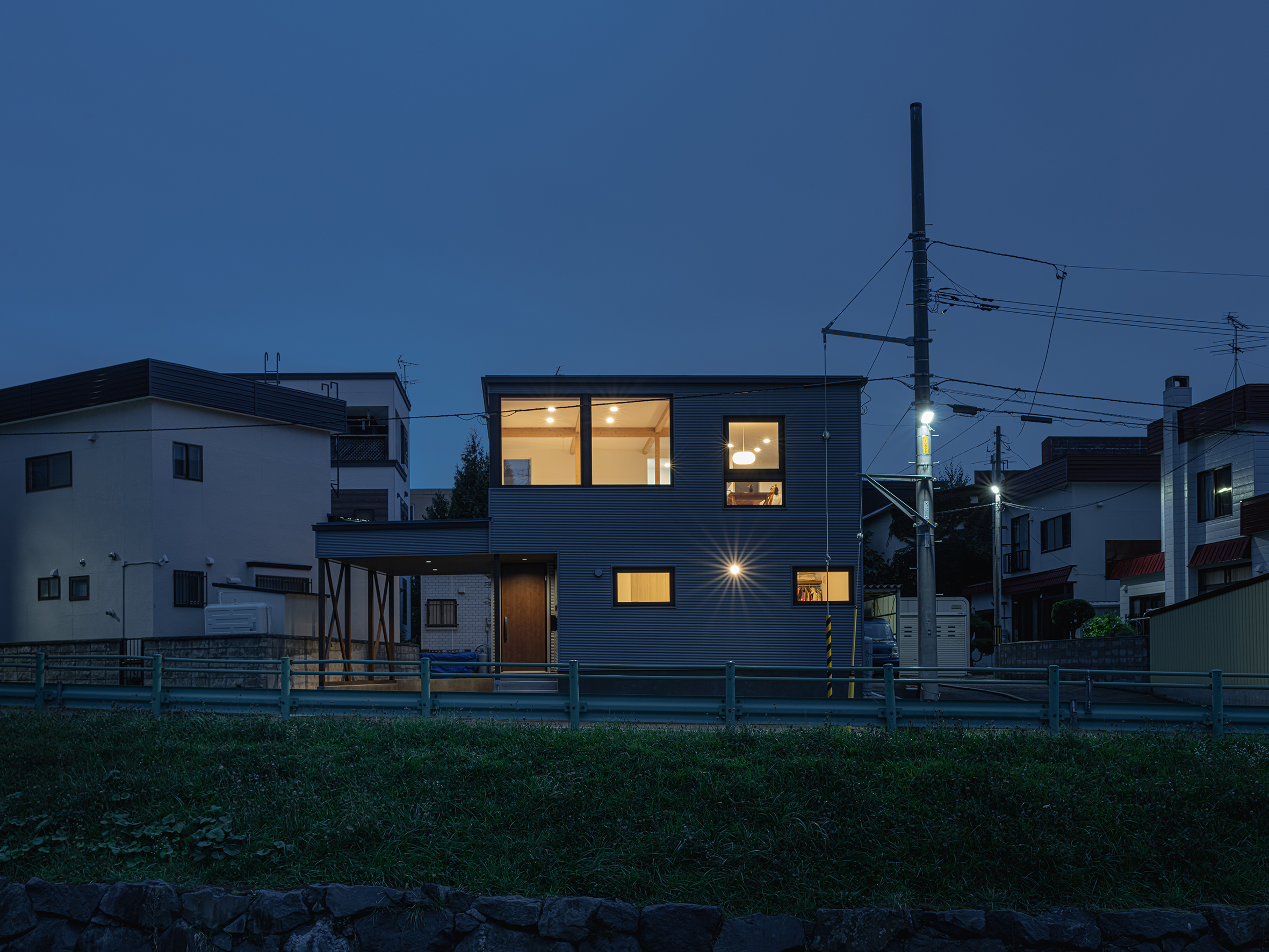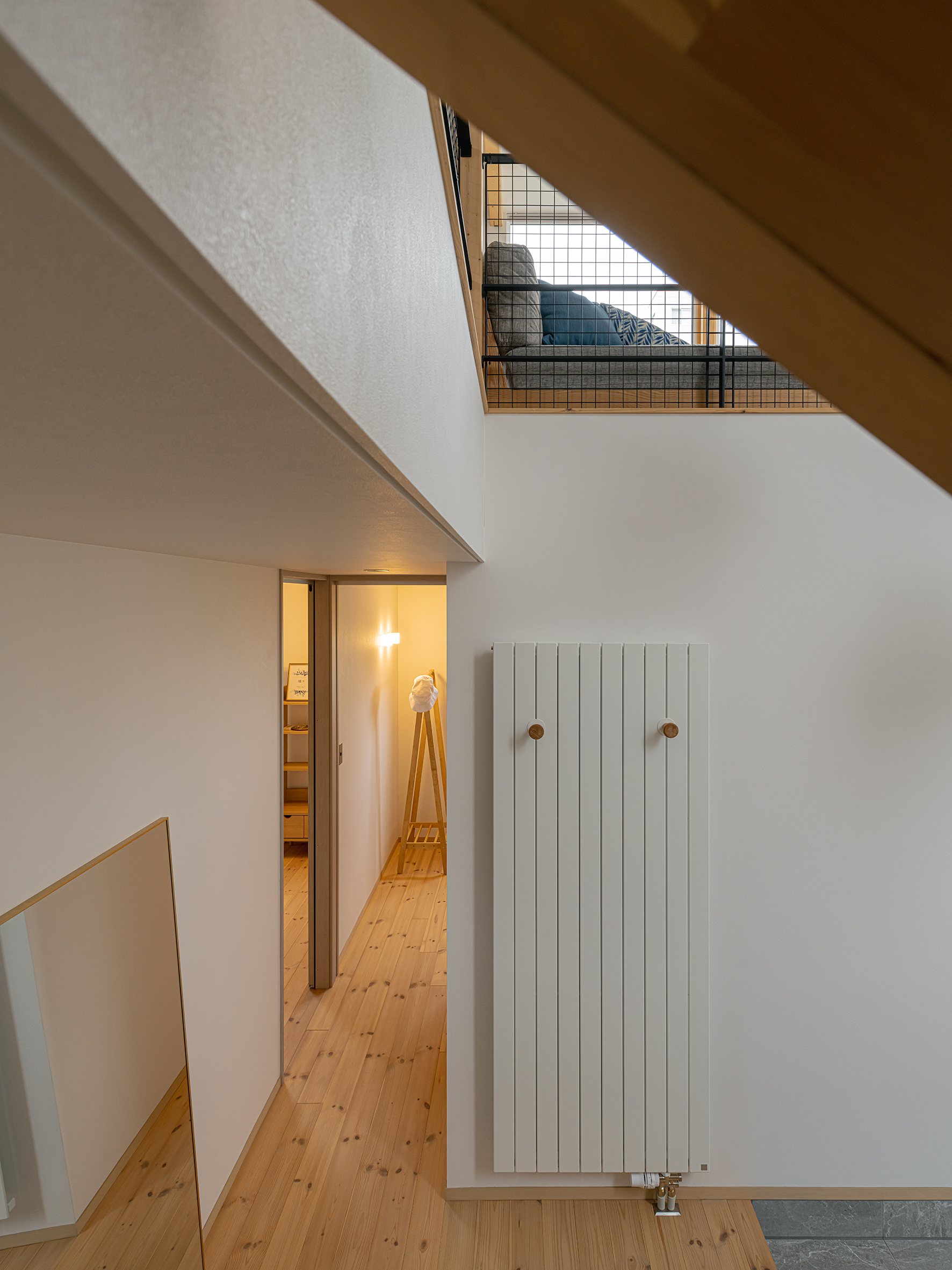 「やわらかい光が射す家」 家族が集まる場所はいつも明るい お互いがどこにいても、何をしても感じられる 吹き抜けからは、やわらかい光が射しこむ フリースペースから見える景色を楽しみながら 家族と共に成長していく
