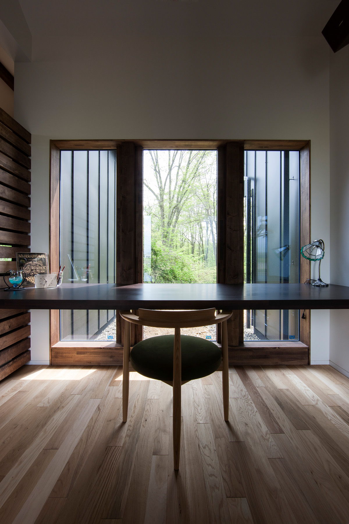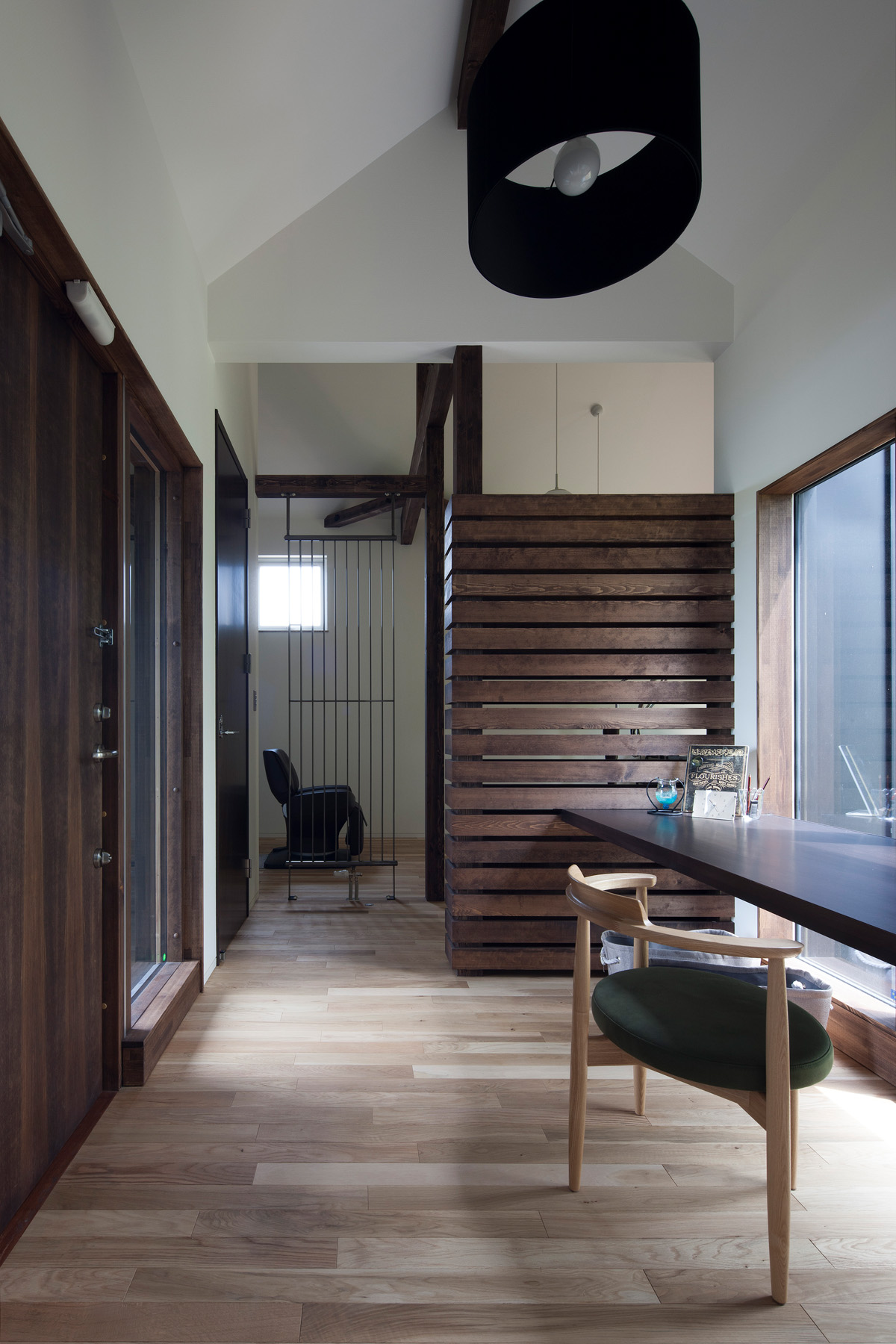 また、店舗のエントランスとしての役目もあり、屋外から玄関ドアを開けると、正面に広がる緑。