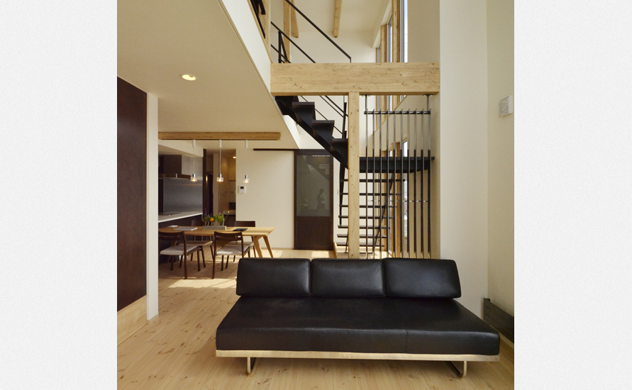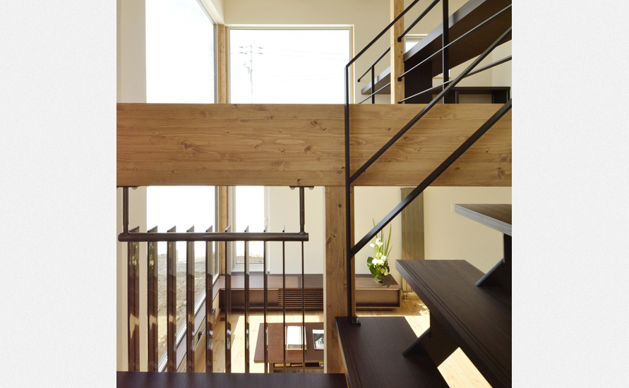 和室に腰掛けると目線は自然と吹抜けを見上げる。