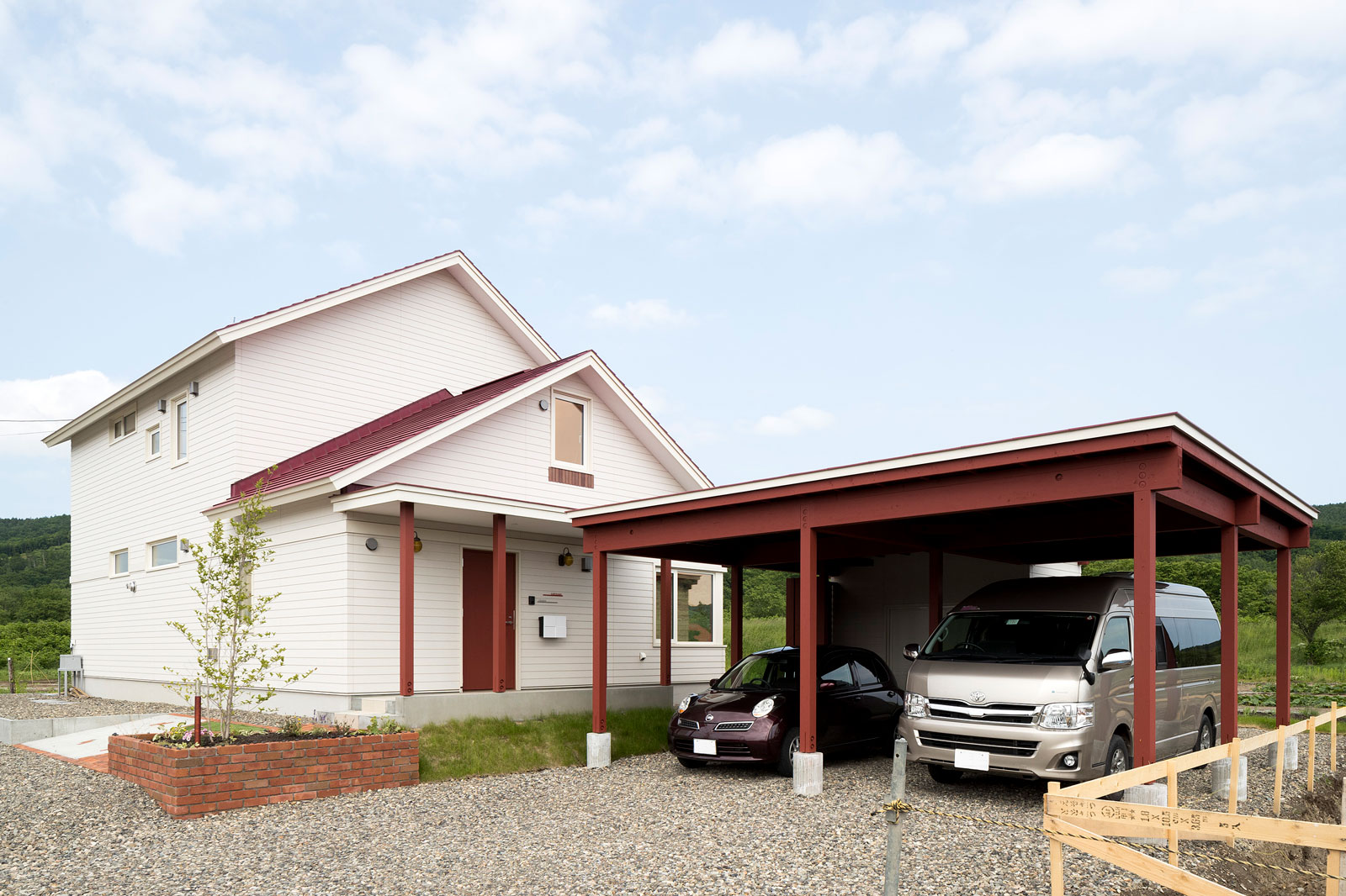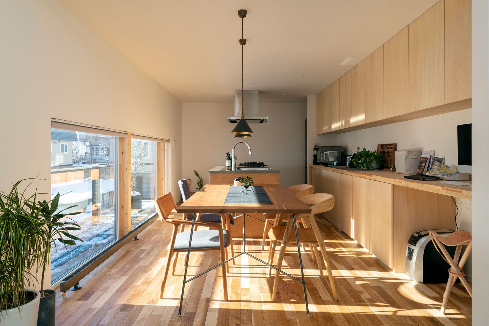 ユカンボシ川の河川沿いに建つ家。 普通の住宅街とは一風違ったロケーションの拡がる敷地。 そこに建つこの家には、この土地を購入したオーナーの意図が確かに反映されている。