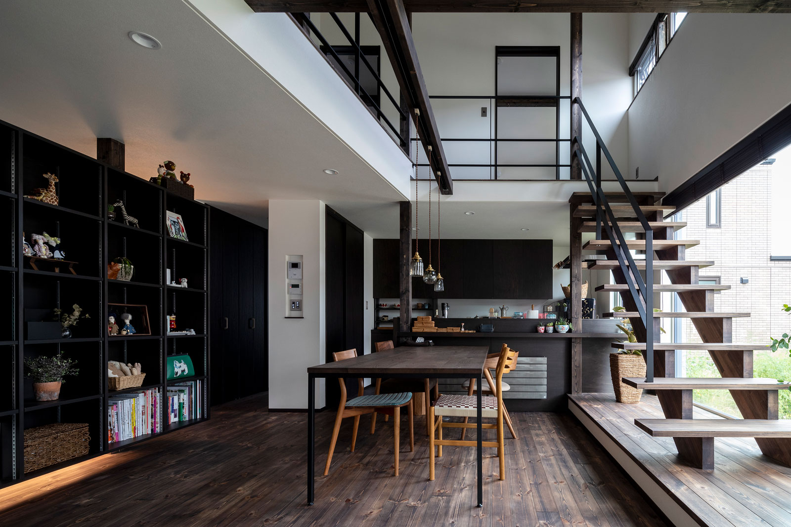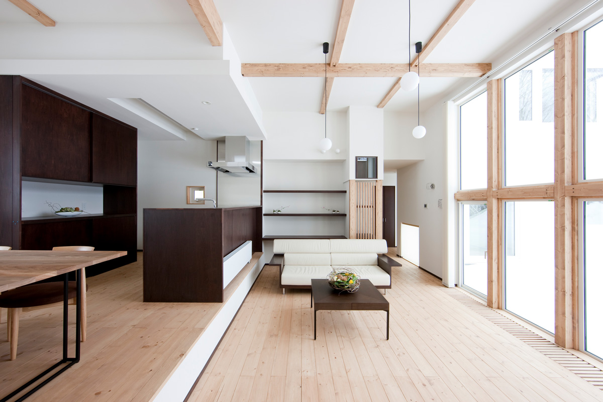 小さな神社のある、山のふもとに暮らす。 ダイニングには、山の四季を取り込む大きな窓。 薪ストーブを囲い家族が集うリビング。 小さな和室からはイグサの香りがする。