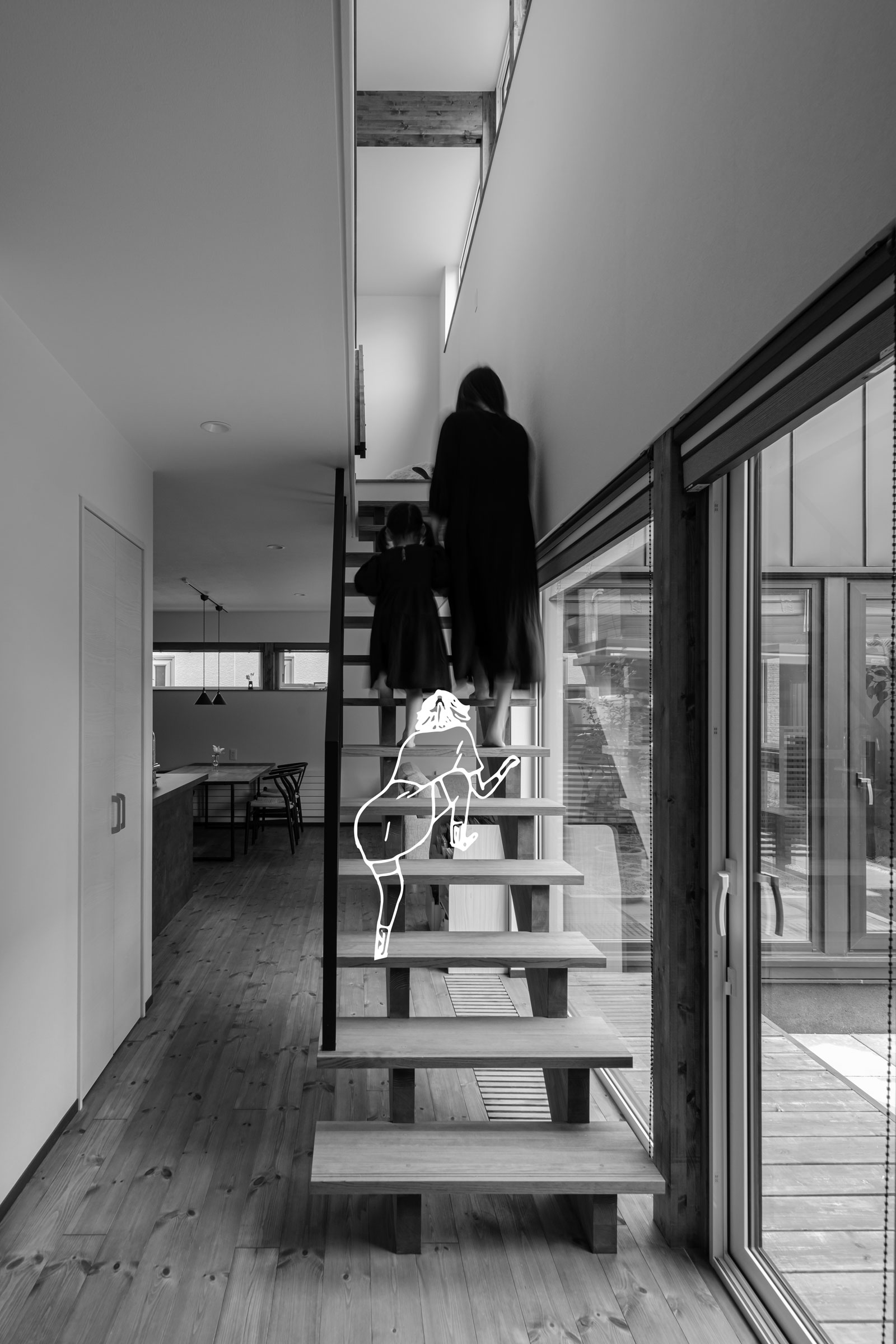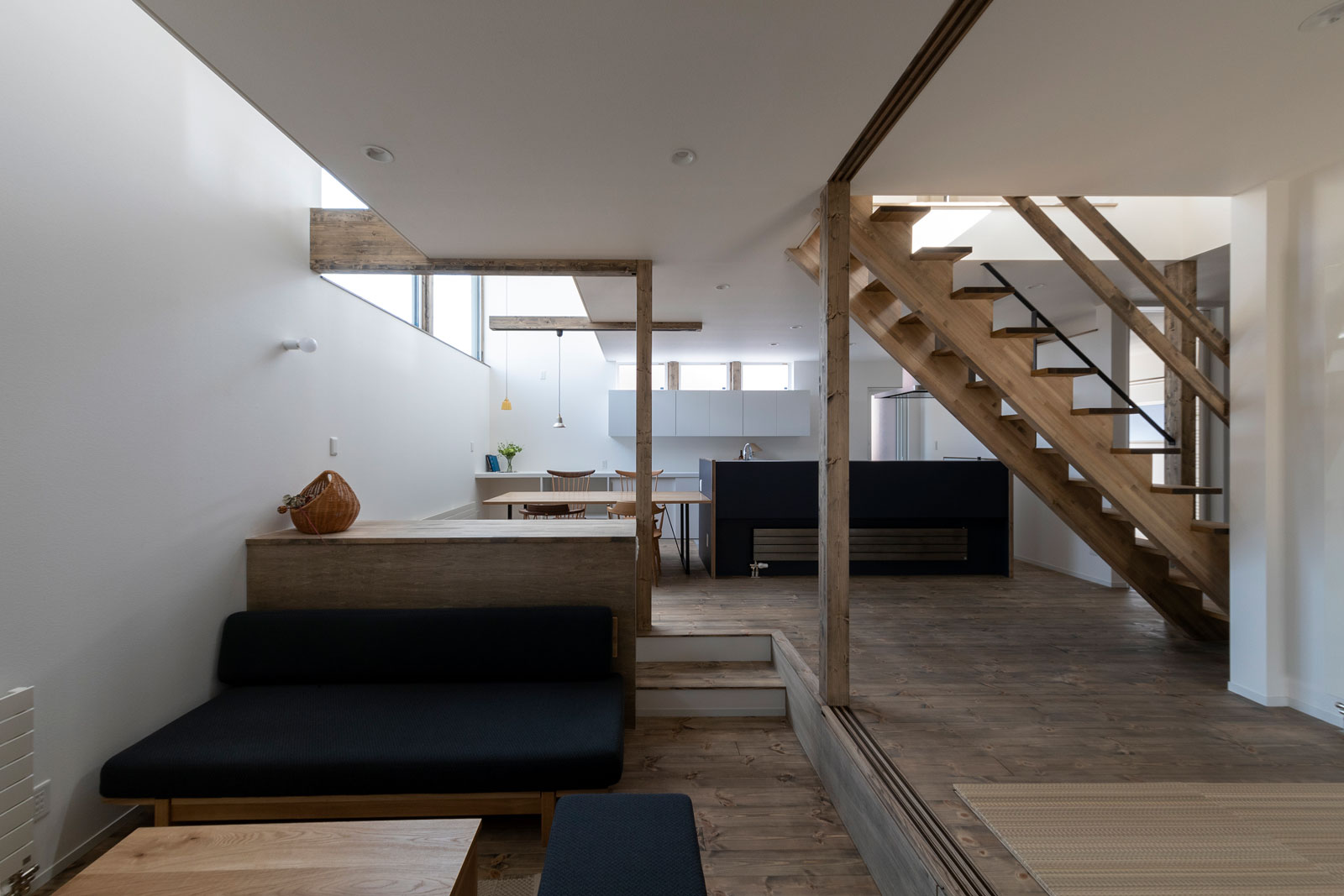 光の強い部分と弱い部分が共存することで、空間にメリハリが生まれる。 居心地の良い場所を、その時々で感じることでアクティビティが生まれる。 その時間、その季節で感じる余韻。