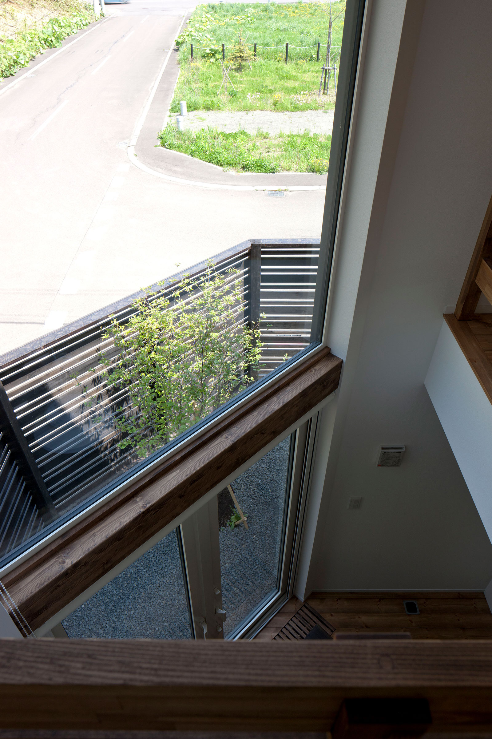 千歳市みどり台。緑に囲まれた角地。 室内に自然をどう取り込むかが、設計の見せどころ。 メインは西側の防風林と、日当たりの良い南側の自然光。