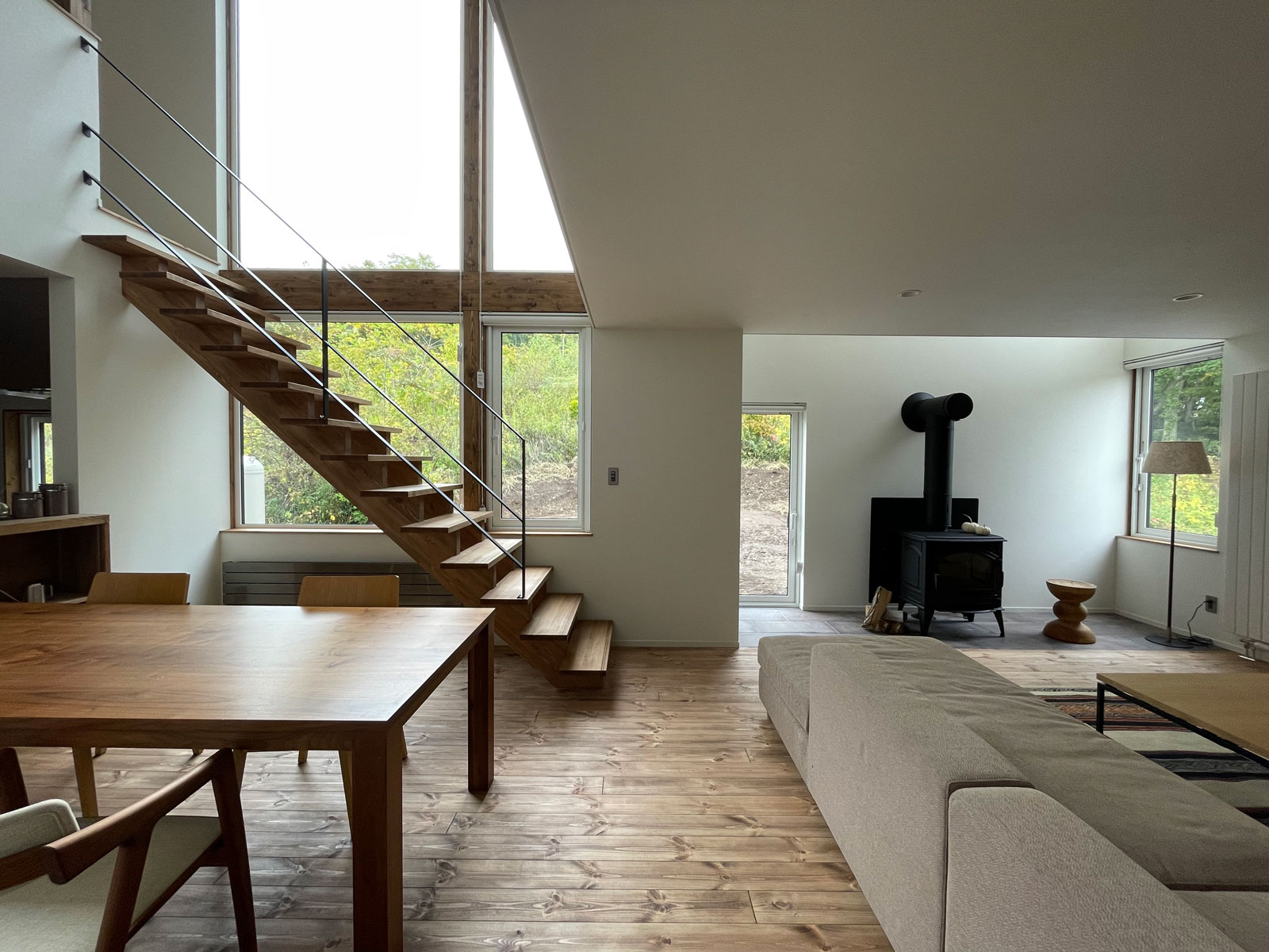 目の前に広がる大自然。 陽のひかりで包み込まれる器。 ダイニイングには暖炉の炎。