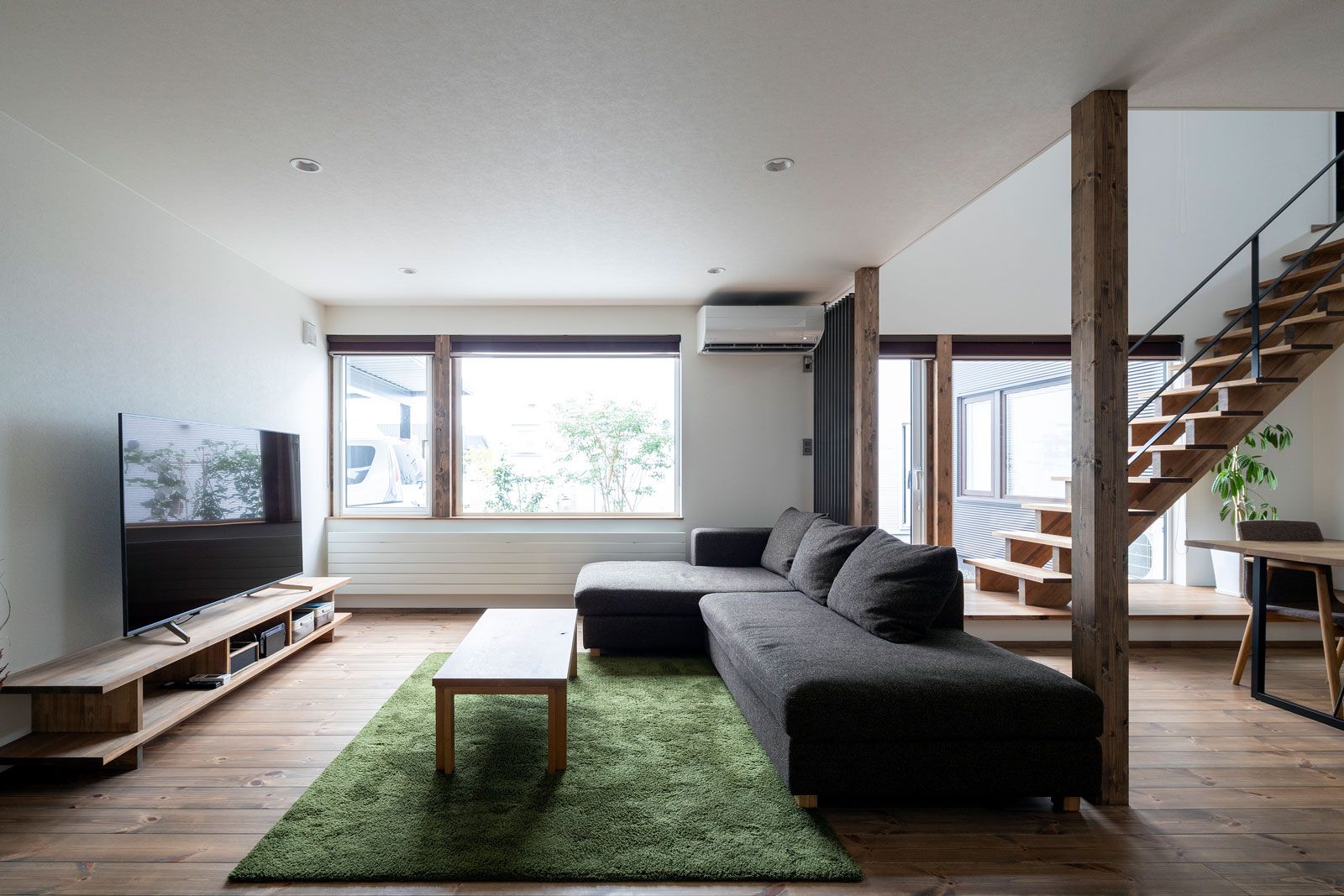 ちょっと広めの階段の踊り場で、今日は絵を描こう。明日は本を読もう。 ここに居るとみんなとつながっているから。 リビングもダイニングもキッチンも和室も2階のフリースペースも。 ひとつの空間に、それぞれの場所が点在している。 そして、ゆるやかにつながっていく。