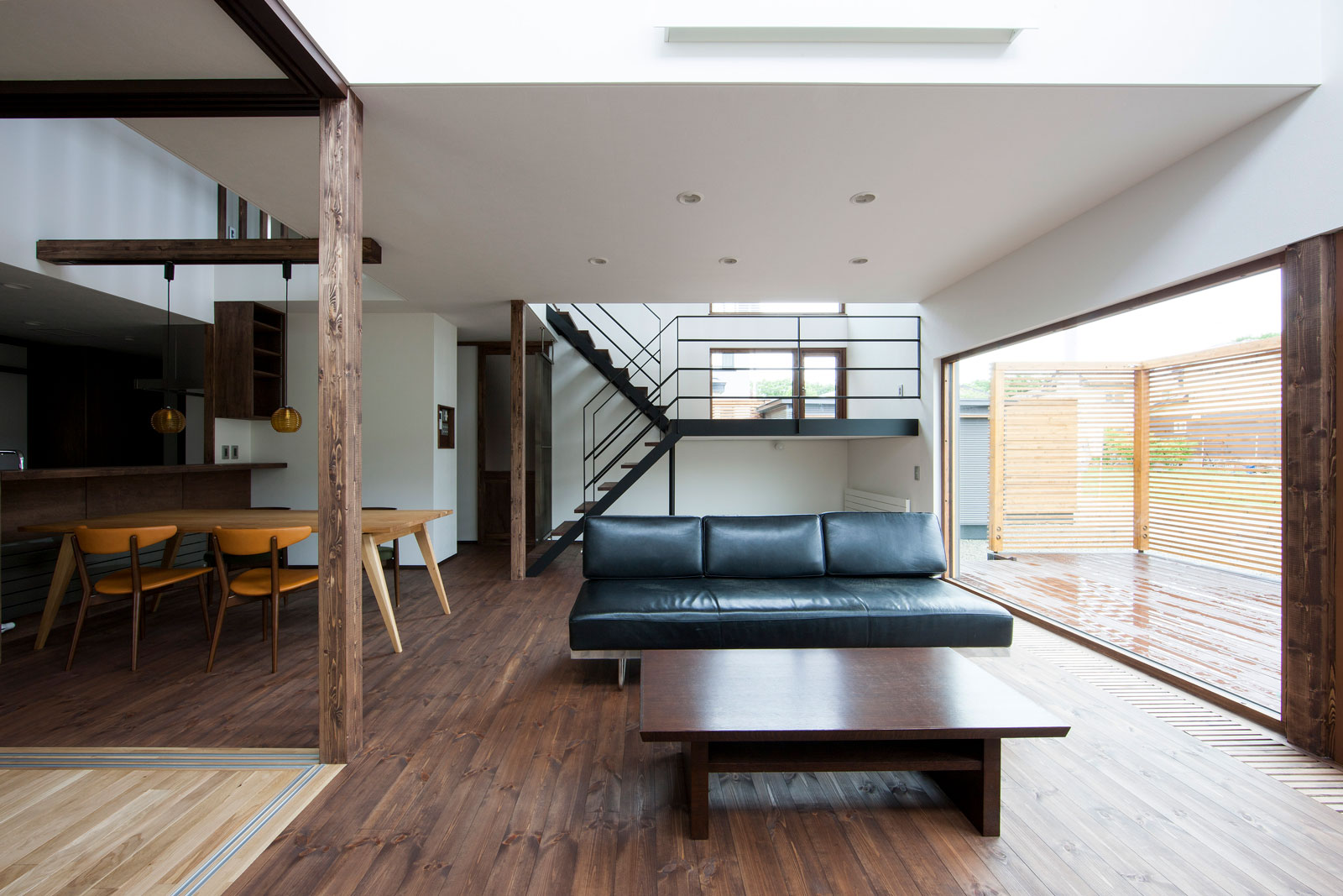 ちょっと広めの階段の踊り場で、今日は絵を描こう。明日は本を読もう。 ここに居るとみんなとつながっているから。 リビングもダイニングもキッチンも和室も2階のフリースペースも。 ひとつの空間に、それぞれの場所が点在している。 そして、ゆるやかにつながっていく。