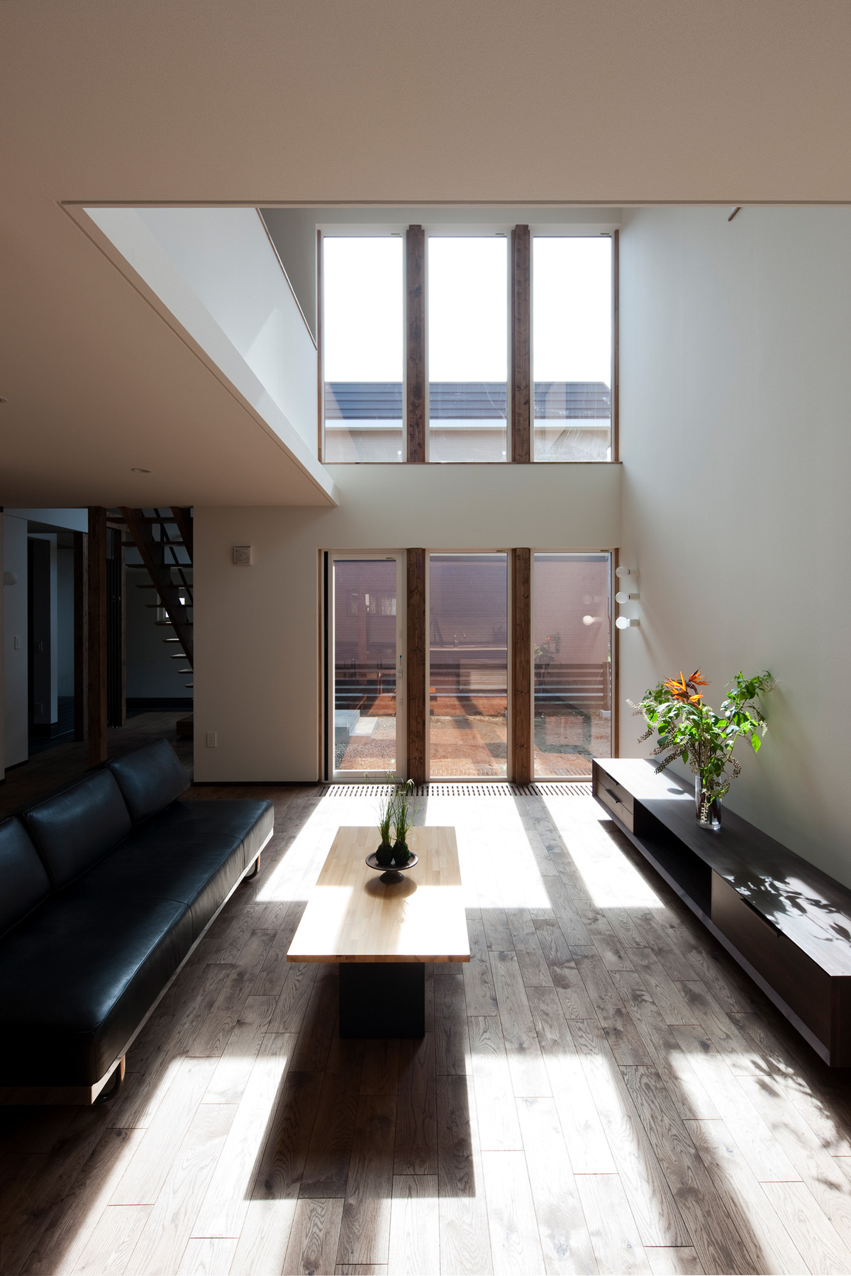 ユカンボシ川の河川沿いに建つ家。 普通の住宅街とは一風違ったロケーションの拡がる敷地。 そこに建つこの家には、この土地を購入したオーナーの意図が確かに反映されている。